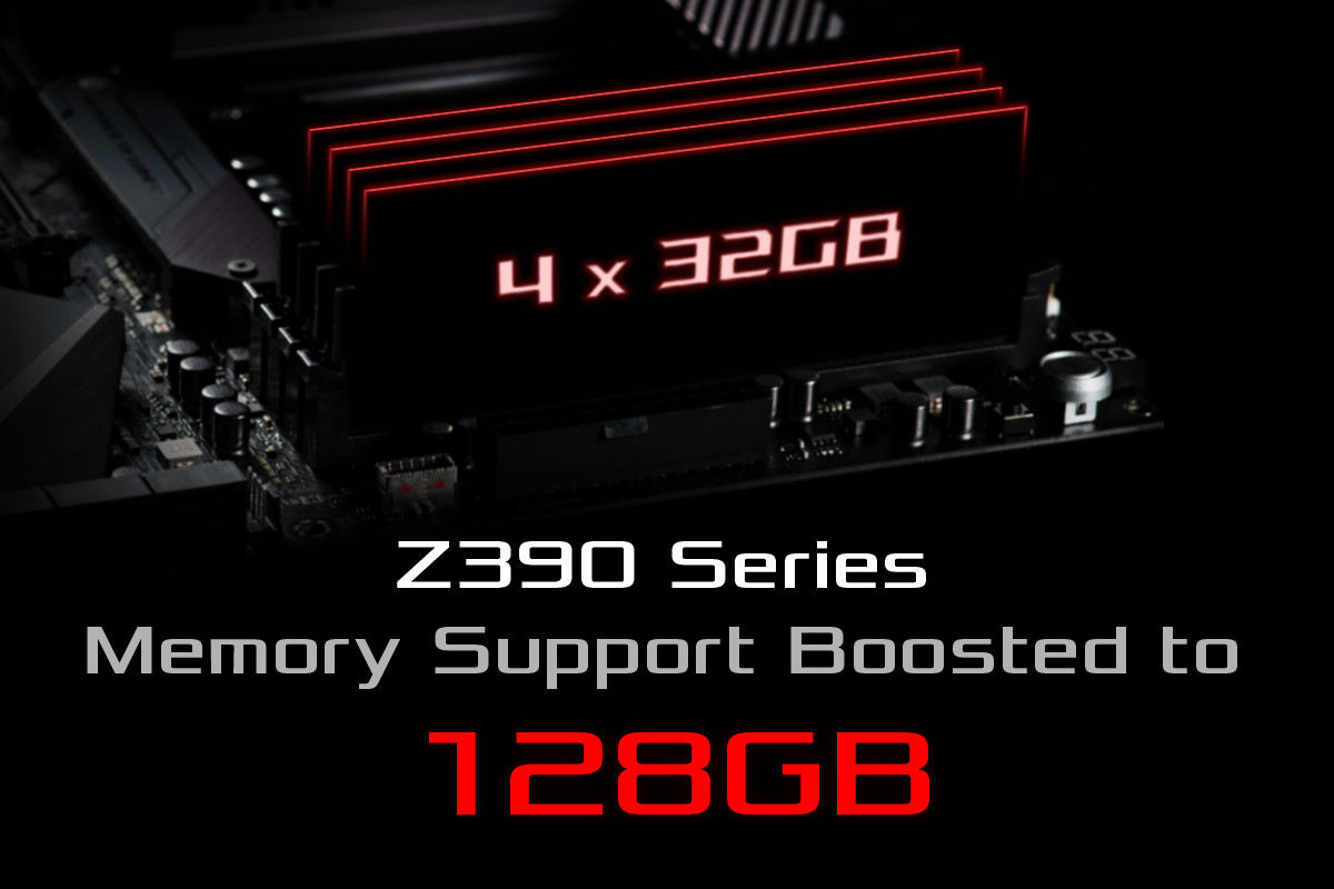 • A new UEFI BIOS rolling out for ASUS Z390 motherboards enables support for up to 128GB of DRAM with four 32GB DIMMs