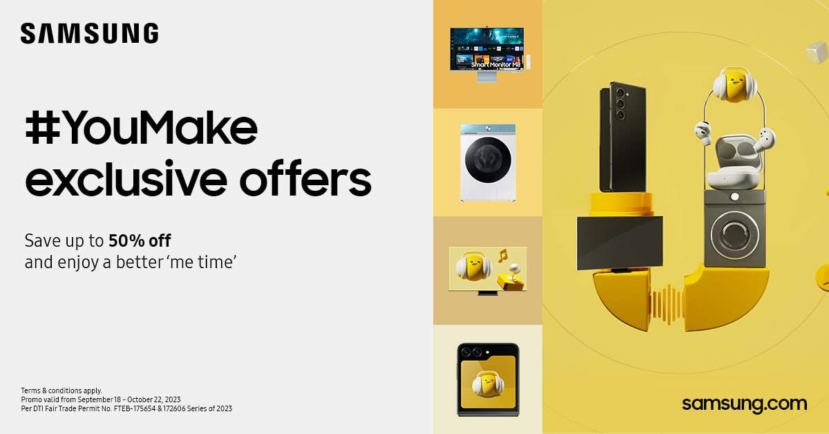 To help you set aside time for stress relief, recharging energy, and stepping away from your busy routine, Samsung is offering exciting and rewarding treats through its #YouMake exclusive offers. Get up to 50% off on high quality entertainment and home appliances to make quality ‘me time’ effortless and extra special.