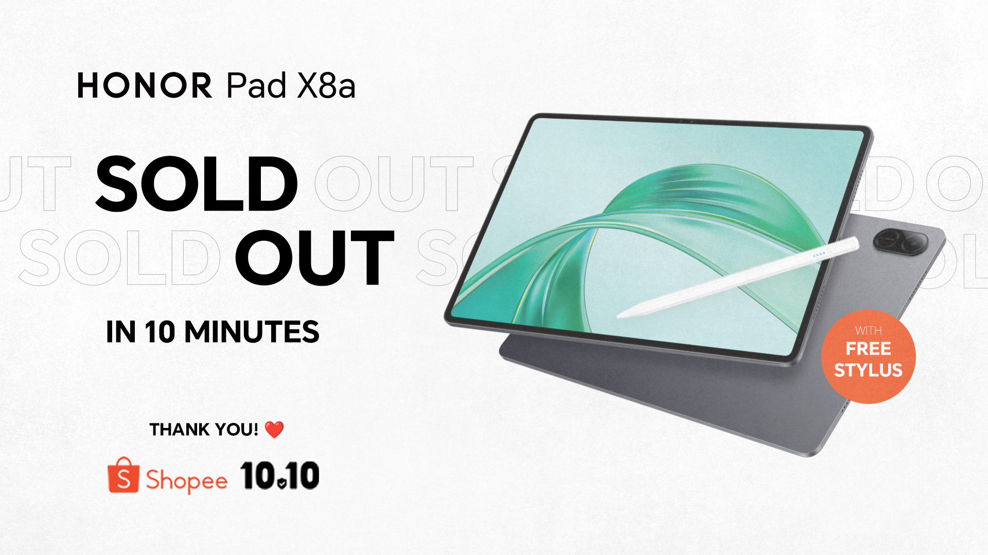 “This is a huge success for us. We cannot thank our HONOR fans enough and those who bought our newest tablet. It’s not long after we launched the exclusive deal of HONOR Pad X8a on Shopee 10.10, and it already got sold out in just minutes,” said HONOR Philippines Vice President Stephen Cheng.