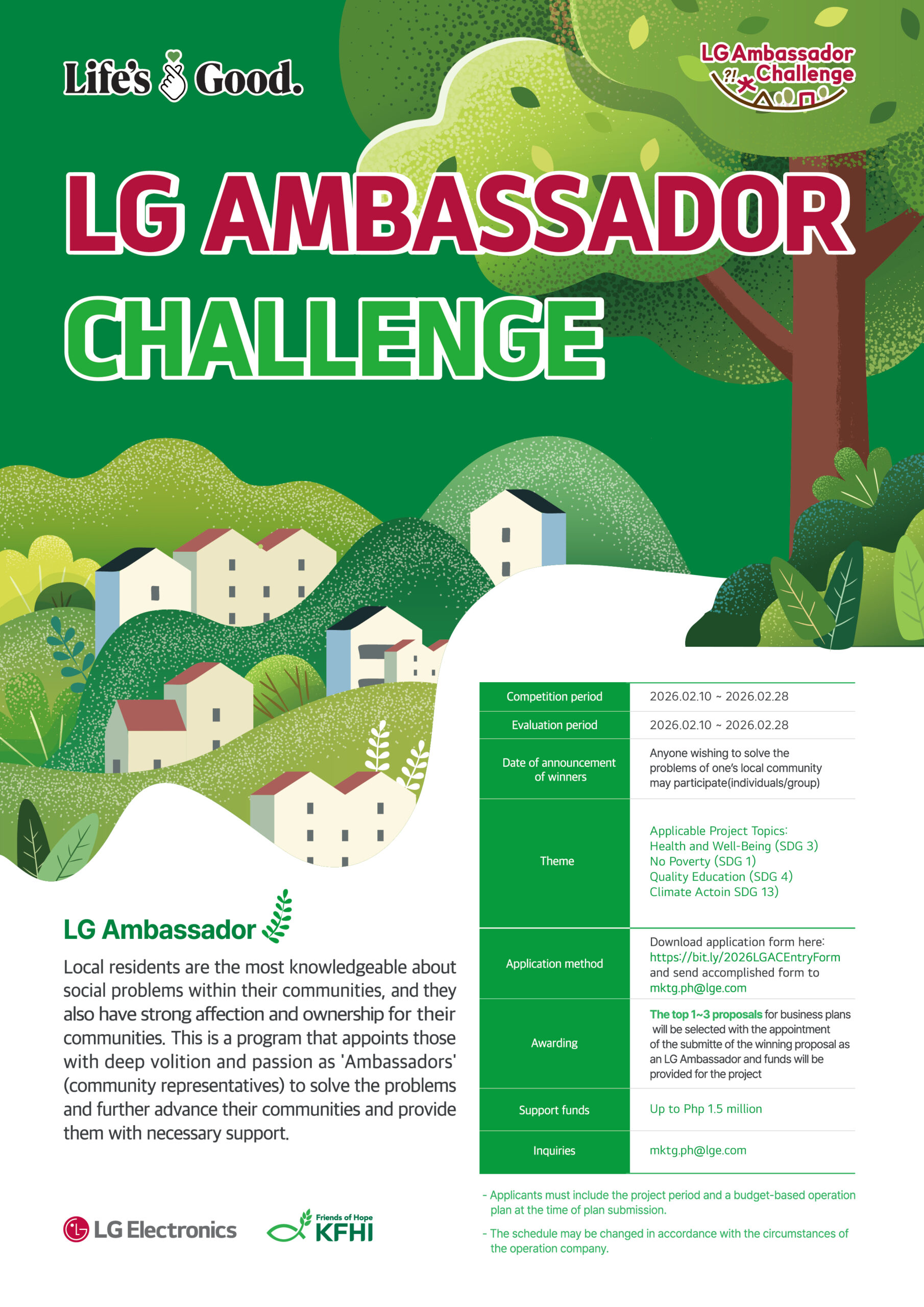 LG Electronics Philippines is encouraging non-profit organizations, advocates, and community leaders with innovative proposals in medical aid and community healthcare to participate in the 2026 LG Ambassador Challenge.