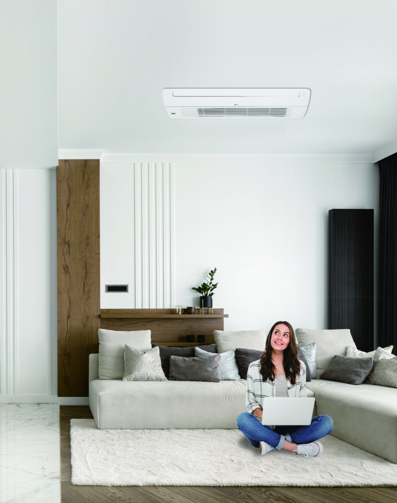 Not every space needs a blast of arctic air. Some need subtlety. LG’s 1-Way Ceiling Mounted Cassette is perfect for corridors, compact rooms, and executive offices. It’s slim—just 132mm—and delivers targeted airflow with a 120° swing. Optional air purification adds a wellness layer, making it ideal for clinics and quiet workspaces.