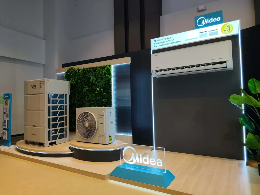 - Midea Chione Inverter Series (floor-standing and high-wall variants) with Eco Mode and AI Humidity Control