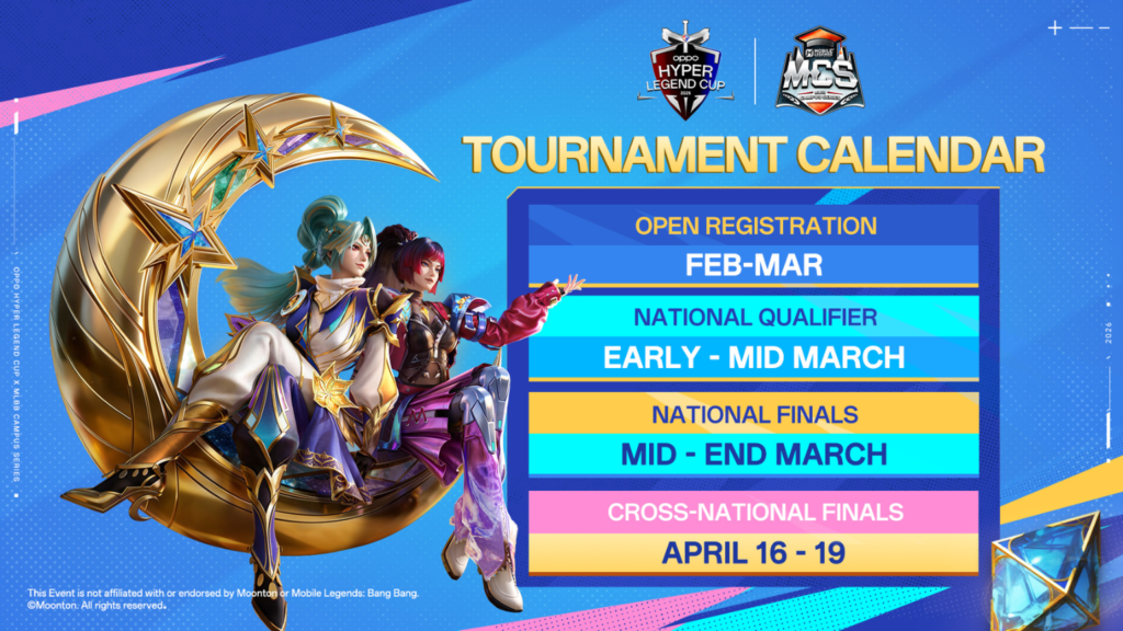Organizers have opened registration for the OPPO Hyper Legend Cup x Mobile Legends: Bang Bang (MLBB) Campus Series, inviting university students across Indonesia, the Philippines, Malaysia, and Singapore to compete in a new regional collegiate tournament.