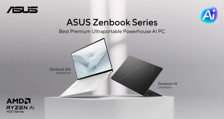 GadgetsLaptops ASUS Launches Zenbook S16, Zenbook 14 with AMD Ryzen AI 400 Series Drew MalihanMarch 4, 2026March 4, 20263 mins ASUS has launched its latest premium laptops in the Philippines: the Zenbook S16 (UM5606GA) and Zenbook 14 (UM3406GA), both powered…