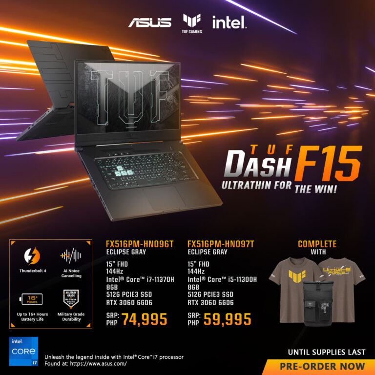 GadgetsLaptops Pre-Order Up for ASUS TUF DASH F15 WITH RTX™ 3060 Christian PeñaApril 8, 20212 mins Pre-Order Up for ASUS TUF DASH F15 WITH RTX™ 3060 PASIG CITY, PHILIPPINES (APRIL __, 2021) – ASUS Philippines announces…