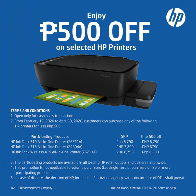 AccesoriesGadgets Enjoy P500 savings when you buy HP Ink Tank printers Christian PeñaFebruary 22, 20202 mins Enjoy P500 savings when you buy HP Ink Tank printers Buying an HP printer today for the kids or the…