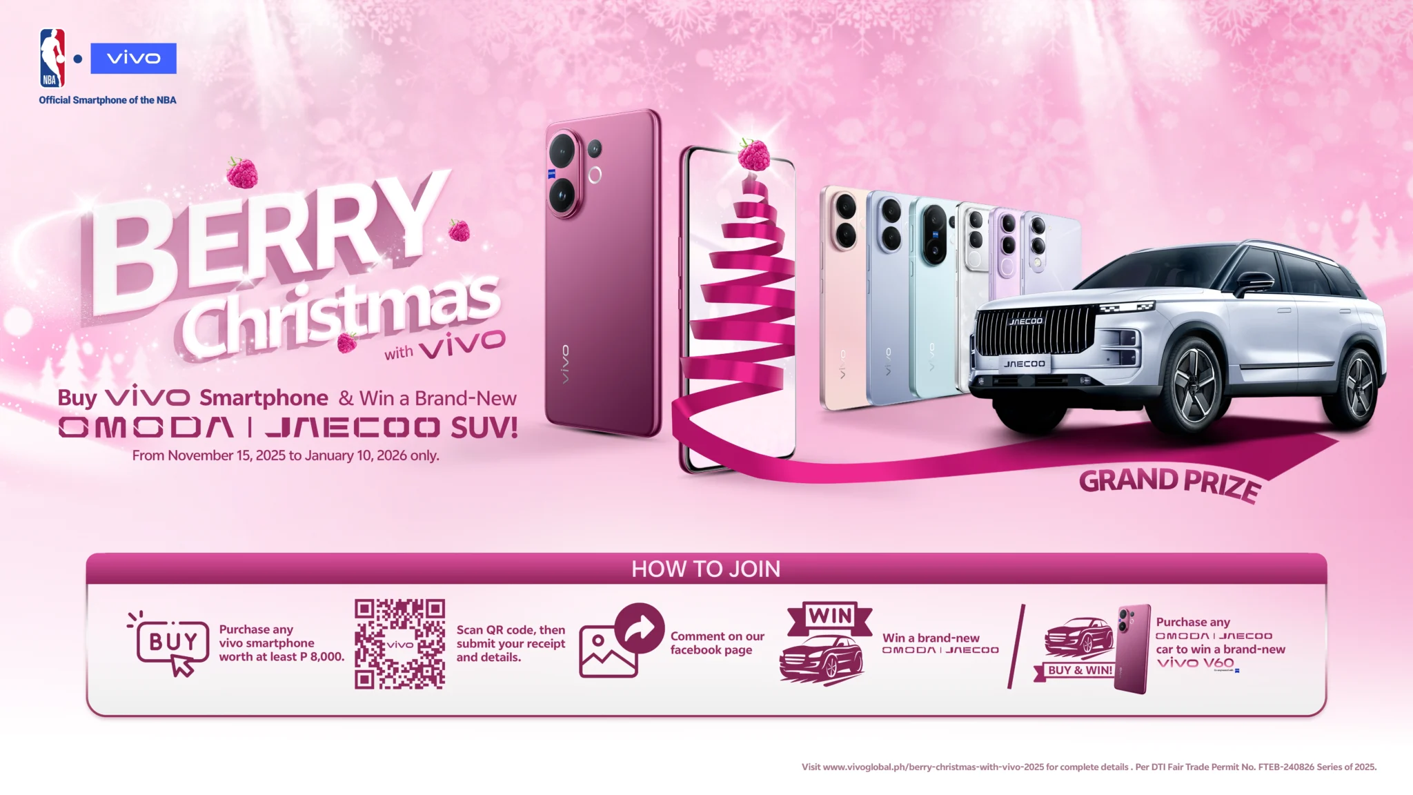 To make the holidays even sweeter, vivo is running its Berry Christmas Promo. Customers who purchase at least ₱8,000 worth of vivo smartphones until January 31, 2026, will get a chance to win a Jaecoo J7 SHS SUV worth ₱1,549,000. This promo adds excitement to every purchase, turning holiday shopping into a chance to drive away with a brand-new SUV.