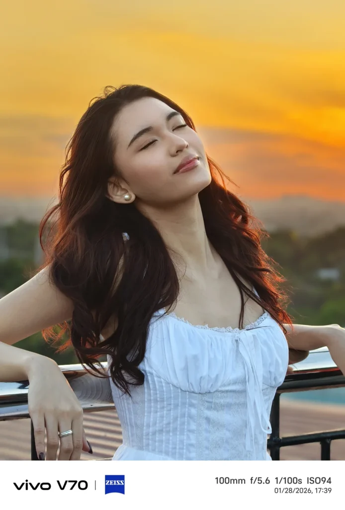Beyond focal length options, the vivo V70 integrates ZEISS Style Bokeh effects and color tuning to refine portrait output. These features help simulate lens-specific depth of field and cinematic color grading directly in-camera.