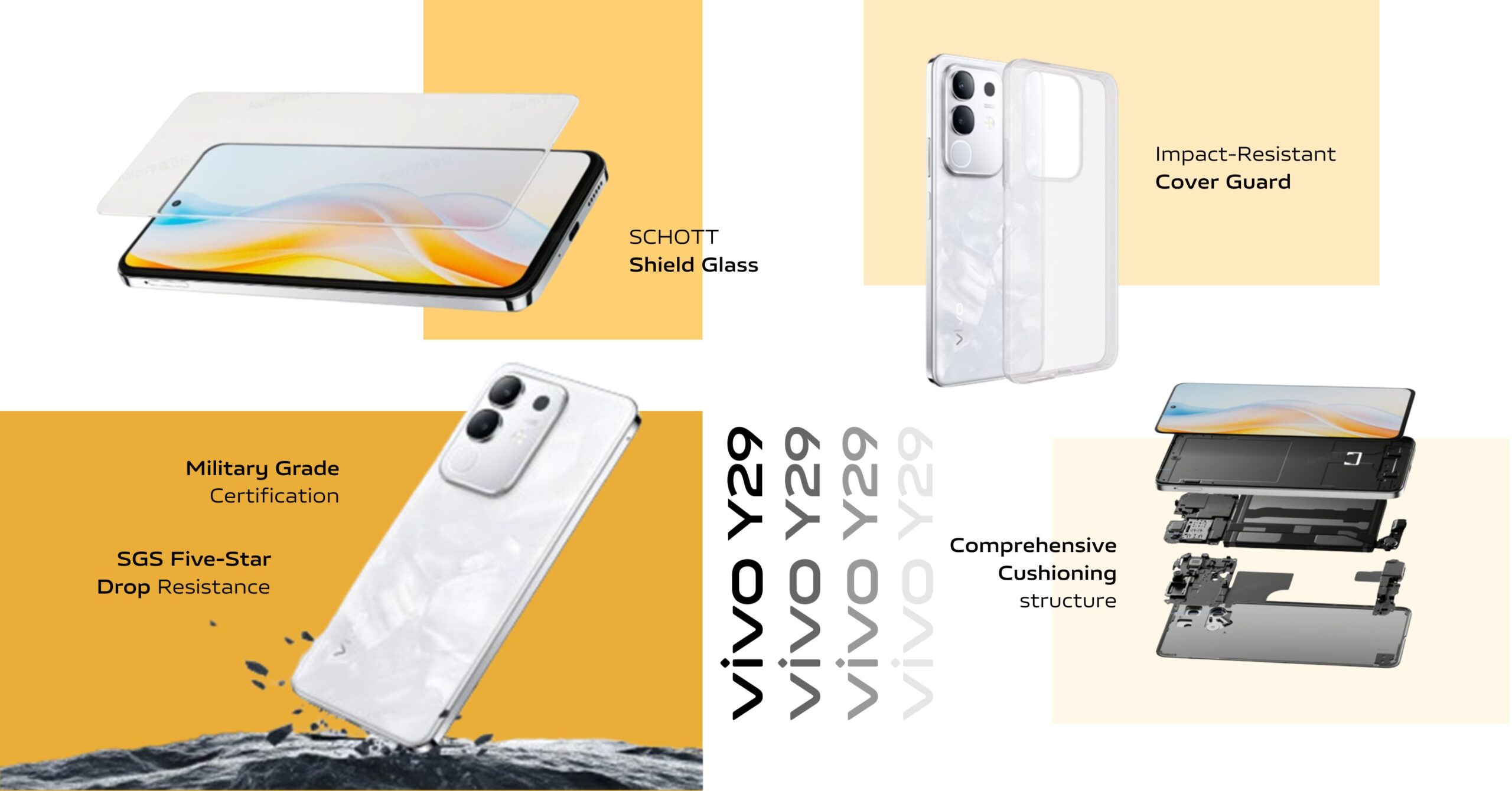 What makes it so durable? Inside, the vivo Y29 features a Comprehensive Cushioning Structure, which is engineered to absorb impact like a pro.